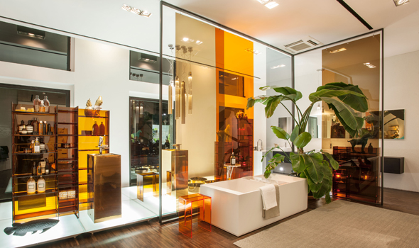 プラスチック家具とバスルームのコーディネートを提案するショールーム「カルテル×ラウフェン」。場所はイタリア・ミラノです。