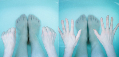 強い冷えを感じる人は、お湯につかりながら手のひらと足指を閉じたり開いたりするグーパー運動をしてみましょう。簡単な動きですが、これをやるだけで手足の先がぐっと温まります。