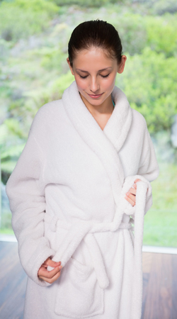 お風呂あがりは湯冷めに注意。バスタオルで水分を拭き取ったら、すぐにパジャマを着るか、バスローブを羽織りましょう。パイル地でできているバスローブは、保温性と保湿性に優れているので湯上がりの身体にぴったりです。