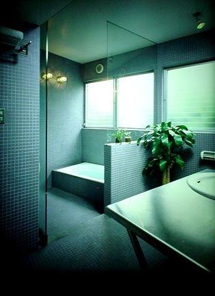 浴室は家族全員が共同使用できるように家族室の近くに配しました。この住宅はどんな生活の場面でも常に家全体、家族全体との関係を体験していくことを重視しています。浴室は洗面所と便所と一体にして、家族が同時に使用することを考えました。