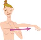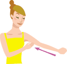 マッサージ 二の腕をあげたときたるむ部分を、ひじから上腕にむかって順々につまみあげます。 マッサージ 指を揃え縦にして、人さし指の側面をひじにあてわきに向かってこすり上げます。