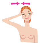 ● 準備として首を3回ほど回します。手のひらを耳に当て、軽く押し合います。4秒間ほどその状態で静止します。逆も同様に行って下さい