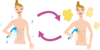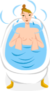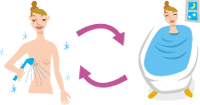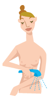 バスタブにつからない場合はシャワーを使いましょう。まず42℃以上の熱めのお湯を2〜3分の間腹部にあてます。お湯を水に替えて今度は瞬時腹部にあてます。これを1セットとして、5回くり返します。