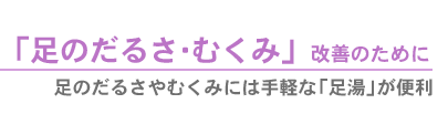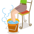 足のだるさや痛みがずいぶんラクになります。しばらくするとお湯の温度が下がってくるので、ポットの熱いお湯を足します。