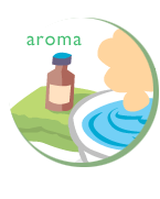 アロマバス バスタブに適温のお湯をはり、2,3滴のエッセンシャルオイルを落とし、よくかき混ぜてオイルを拡散させて入浴する。
