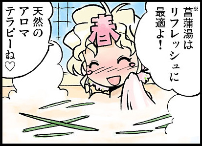 NHK天気予報に登場する萌えキャラ“春ちゃん”がこの連休の疲れを、菖蒲湯で癒しているというお話。 こちら春ちゃんの気象豆知識は、“春ちゃん”登場の4コママンガと一緒に、季節やお天気のことを知ることができます。